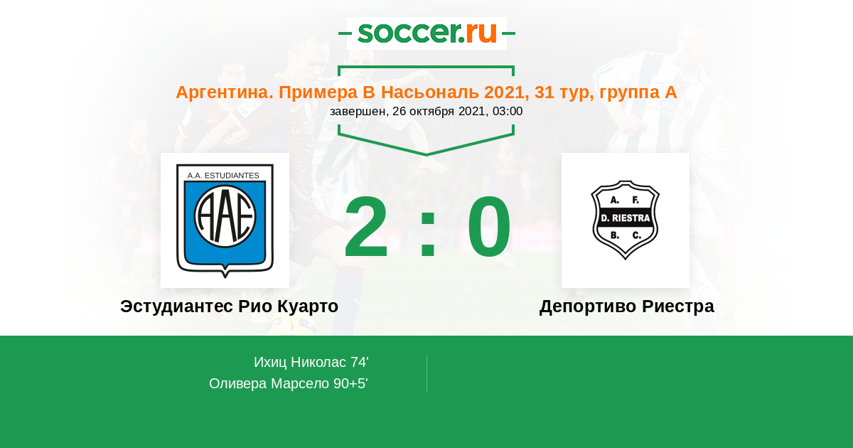Протокол матча Эстудиантес Рио Куарто против Депортиво Риестра