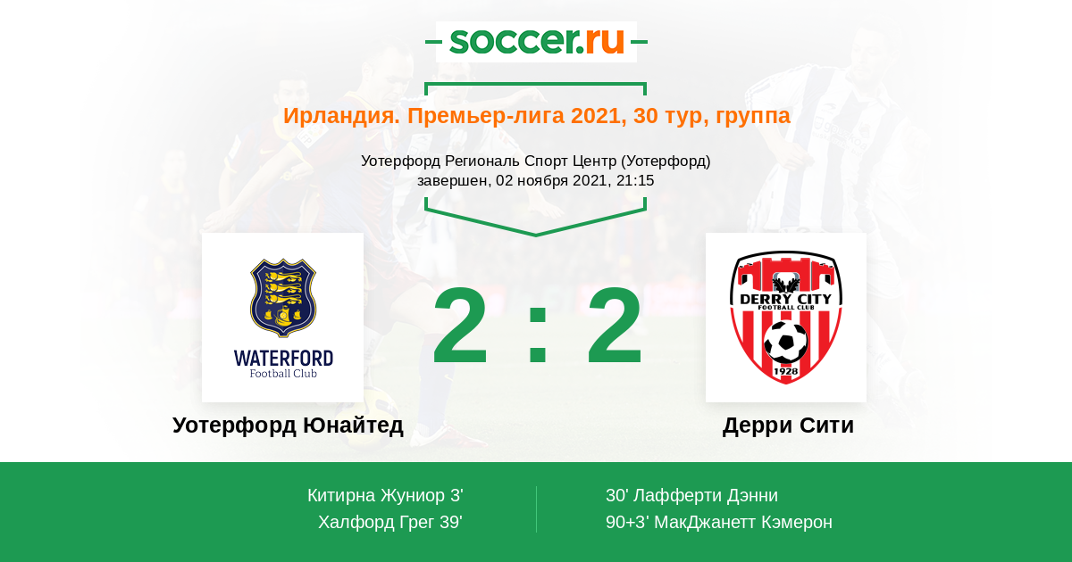 Протокол матча Уотерфорд Юнайтед против Дерри Сити
