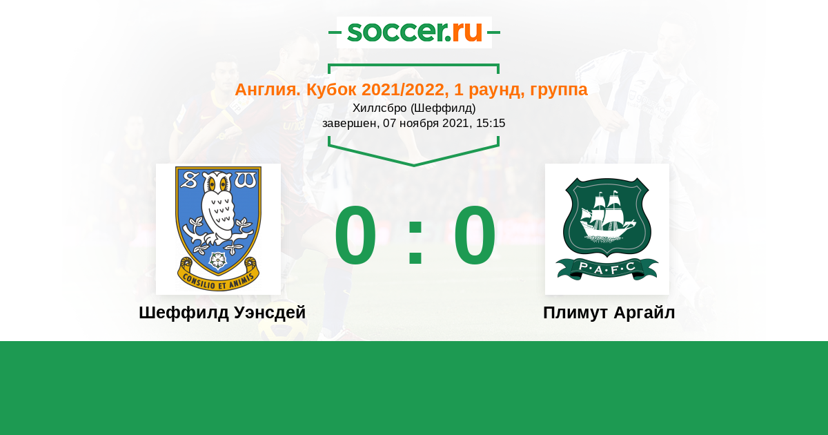 Протокол матча Шеффилд Уэнсдей против Плимут Аргайл