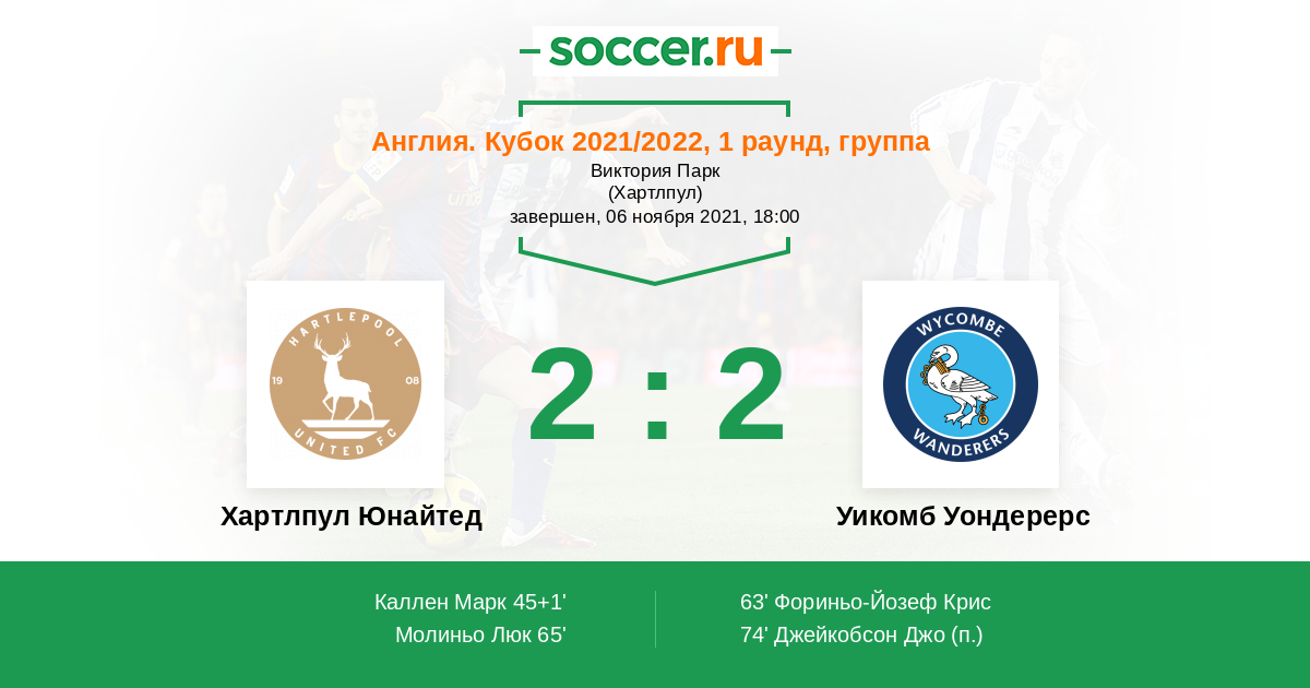 Протокол матча Хартлпул Юнайтед против Уикомб Уондерерс