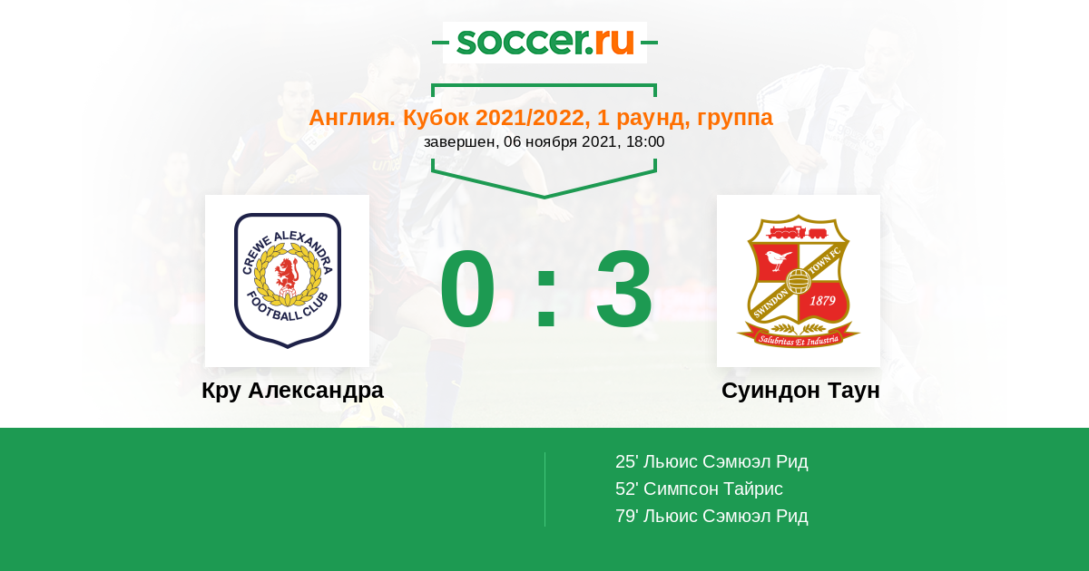 25' (0:1) Льюис Сэмюэл Рид (25) (Одимайо Акинвале (2))