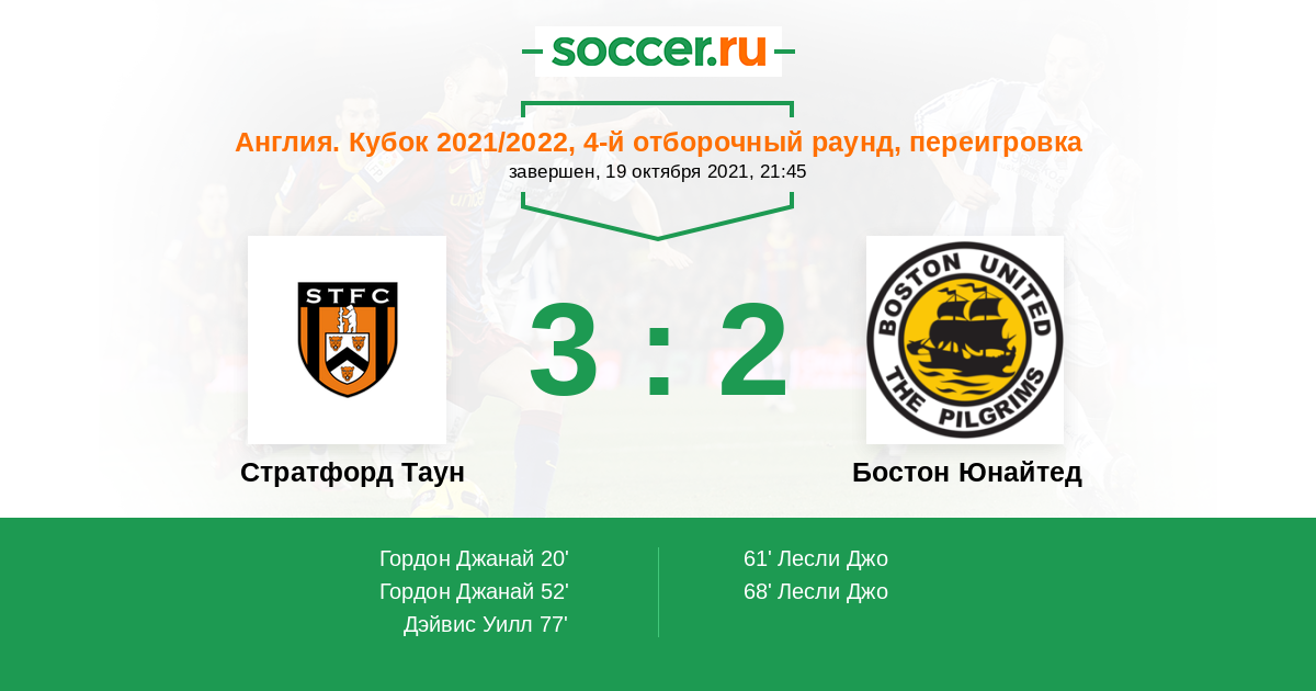 Протокол матча Стратфорд Таун против Бостон Юнайтед