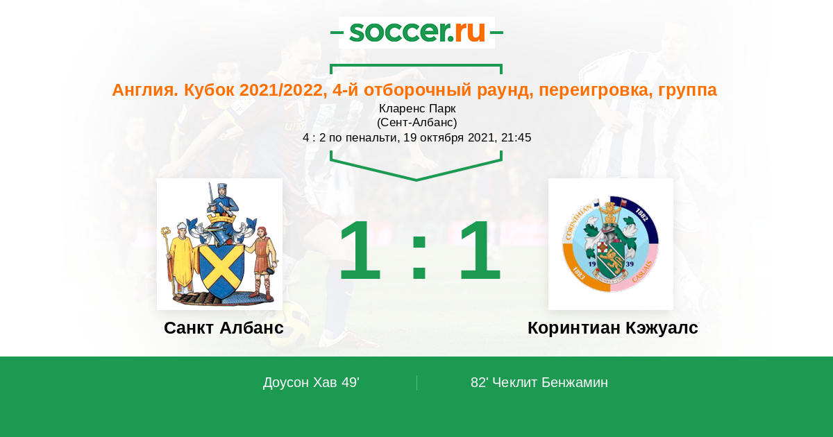 Протокол матча Санкт Албанс против Коринтиан Кэжуалс