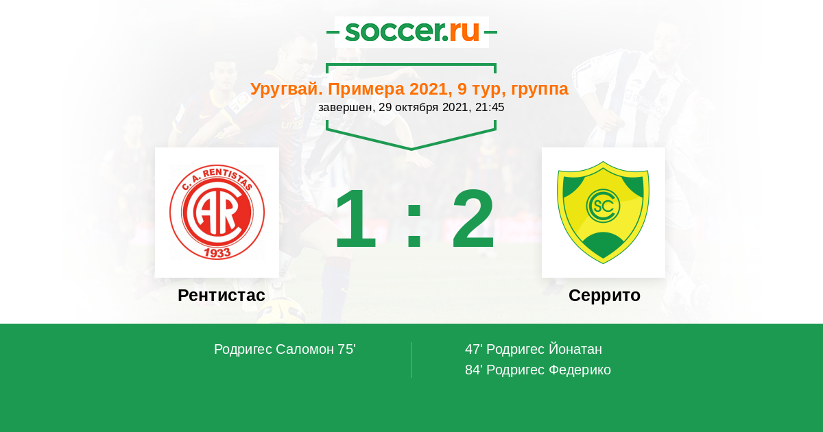 Протокол матча Рентистас против Серрито