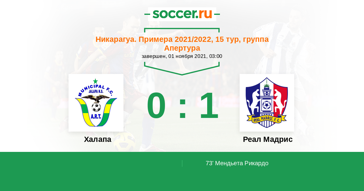 Протокол матча Халапа против Реал Мадрис