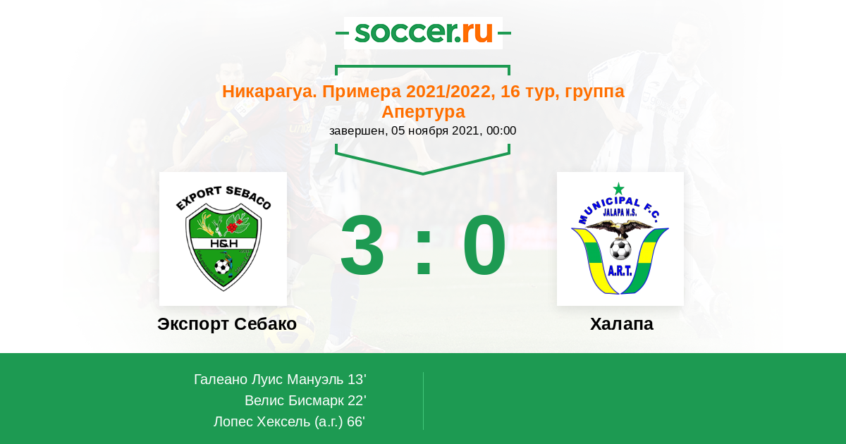 Протокол матча Экспорт Себако против Халапа