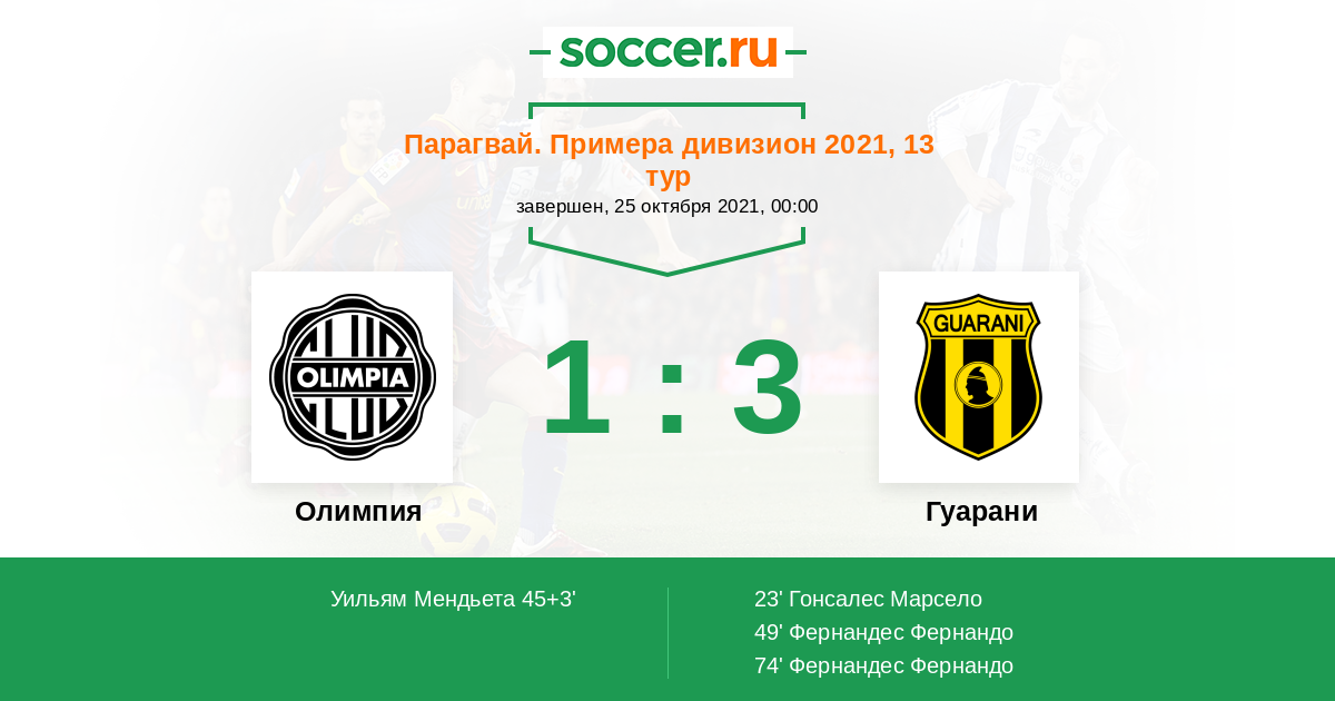 Протокол матча Олимпия против Гуарани