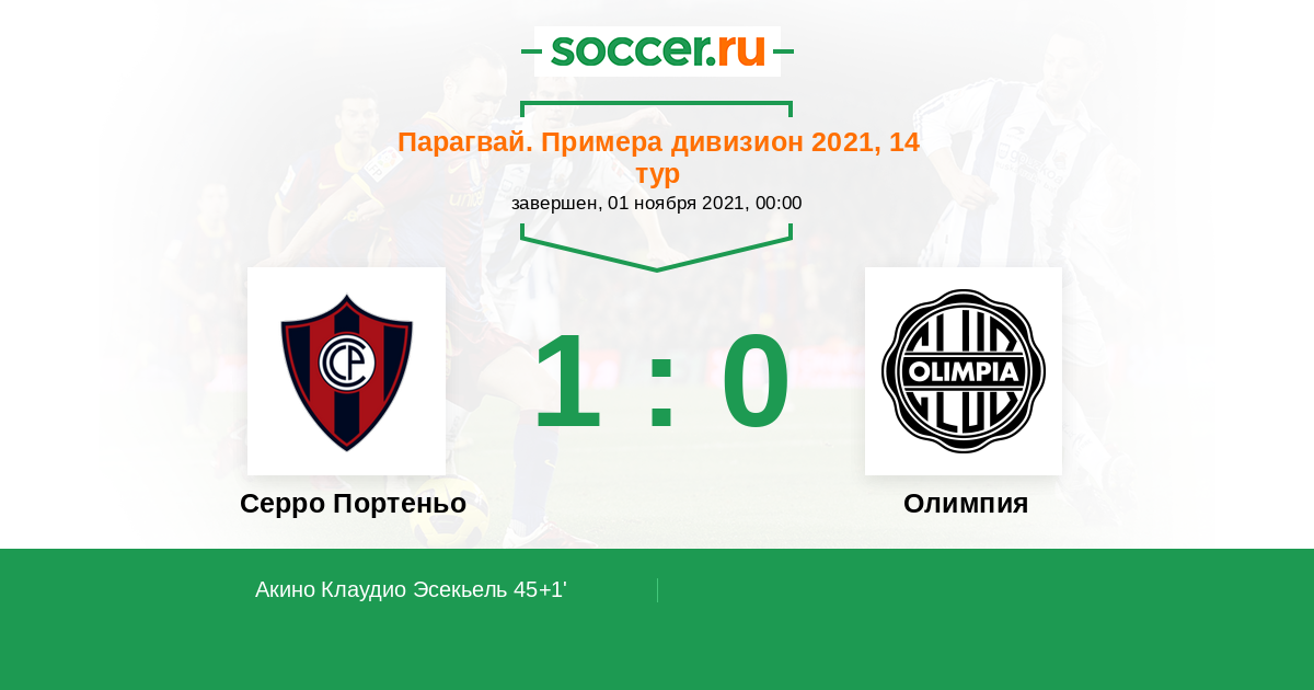 Гол45+1' (1:0) Акино Клаудио Эсекьель (22) (Карраскал Рафаэль (6))