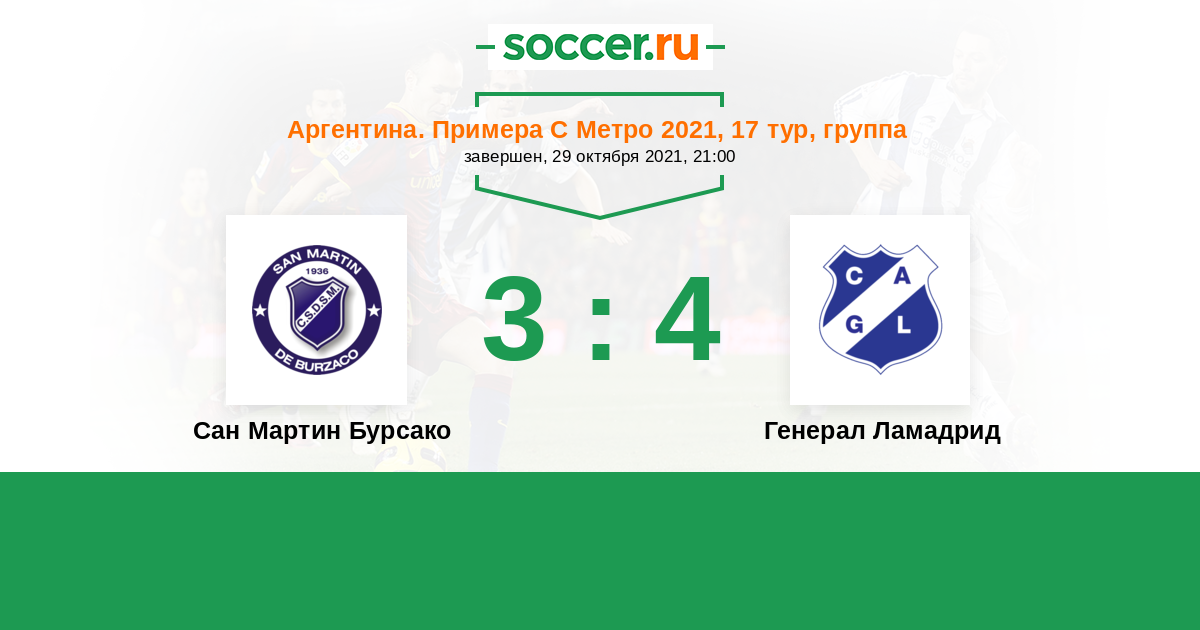 Аргентина. Примера С Метро 04.07.2021 Генерал Ламадрид Логотип Генерал Ламадрид (Буэнос-Айрес) 1:2 Логотип футбольный клуб Сан Мартин Бурсако Сан Мартин Бурсако