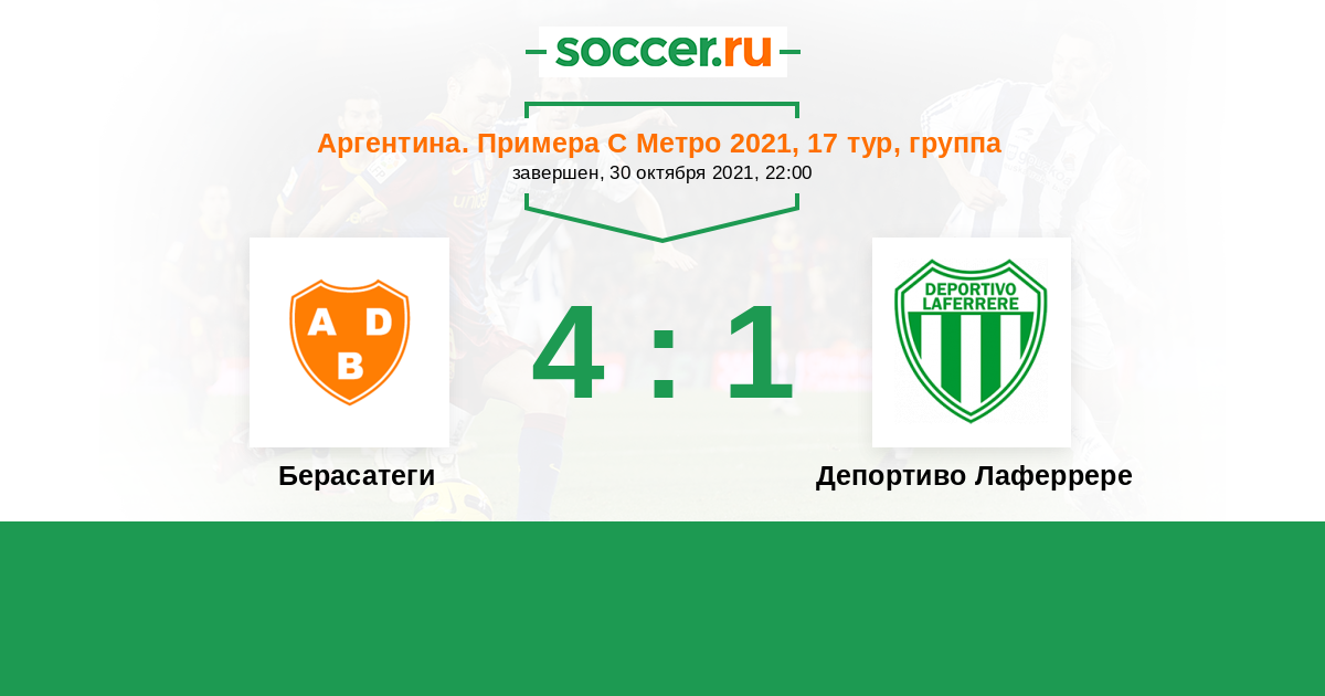 Аргентина. Примера С Метро 04.07.2021 Депортиво Лаферрере Логотип футбольный клуб Депортиво Лаферрере 1:2 Логотип футбольный клуб Берасатеги (Буэнос-Айрес) Берасатеги