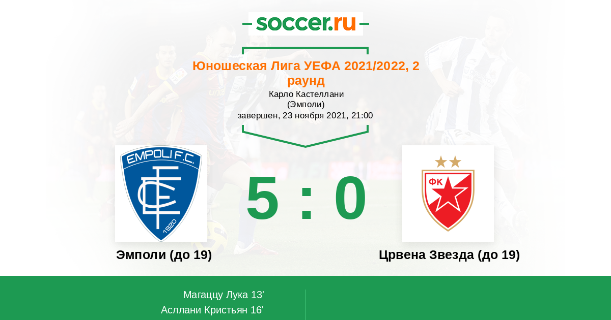 Протокол матча Эмполи (до 19) против Црвена Звезда (до 19)
