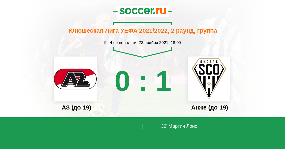 Протокол матча АЗ (до 19) против Анже (до 19)