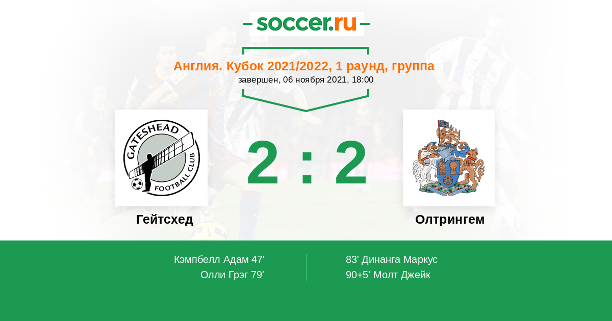 Протокол матча Гейтсхед против Олтрингем
