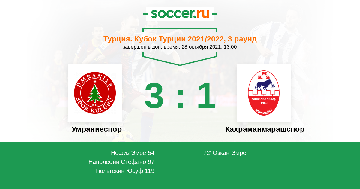 Протокол матча Умраниеспор против Кахраманмарашспор
