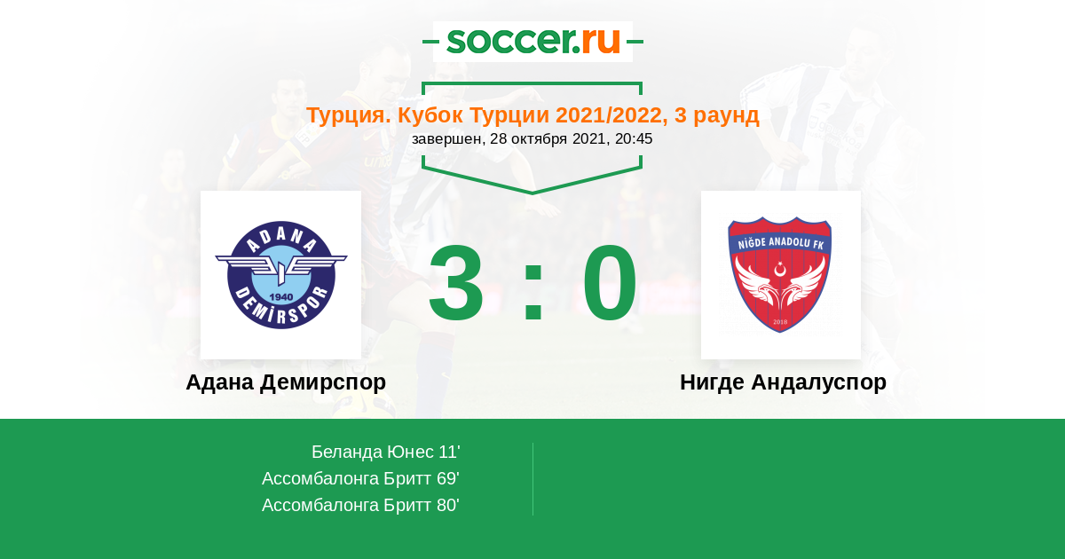 Протокол матча Адана Демирспор против Нигде Андалуспор