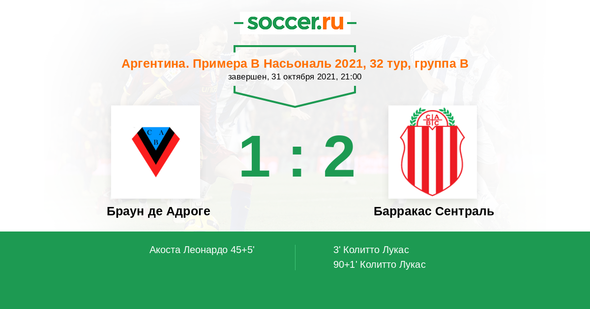 Протокол матча Браун де Адроге против Барракас Сентраль