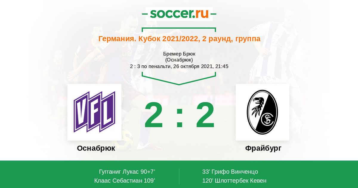 Протокол матча Оснабрюк против Фрайбург