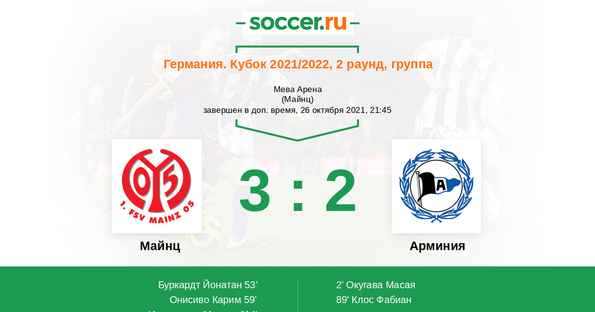 Протокол матча Майнц против Арминия