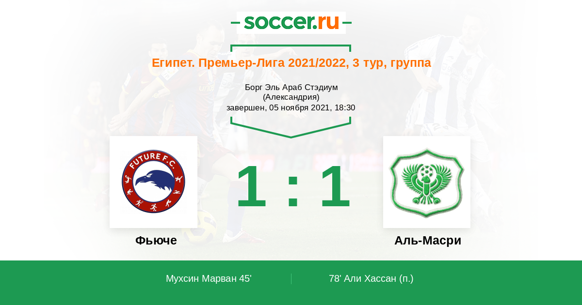 Протокол матча Фьюче против Аль-Масри