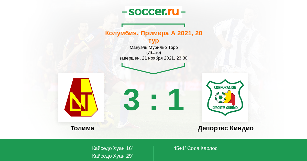 16' (1:0) Кайседо Хуан (9) (Риаскос Лейдер (4))