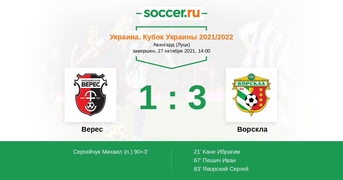 Протокол матча Верес против Ворскла