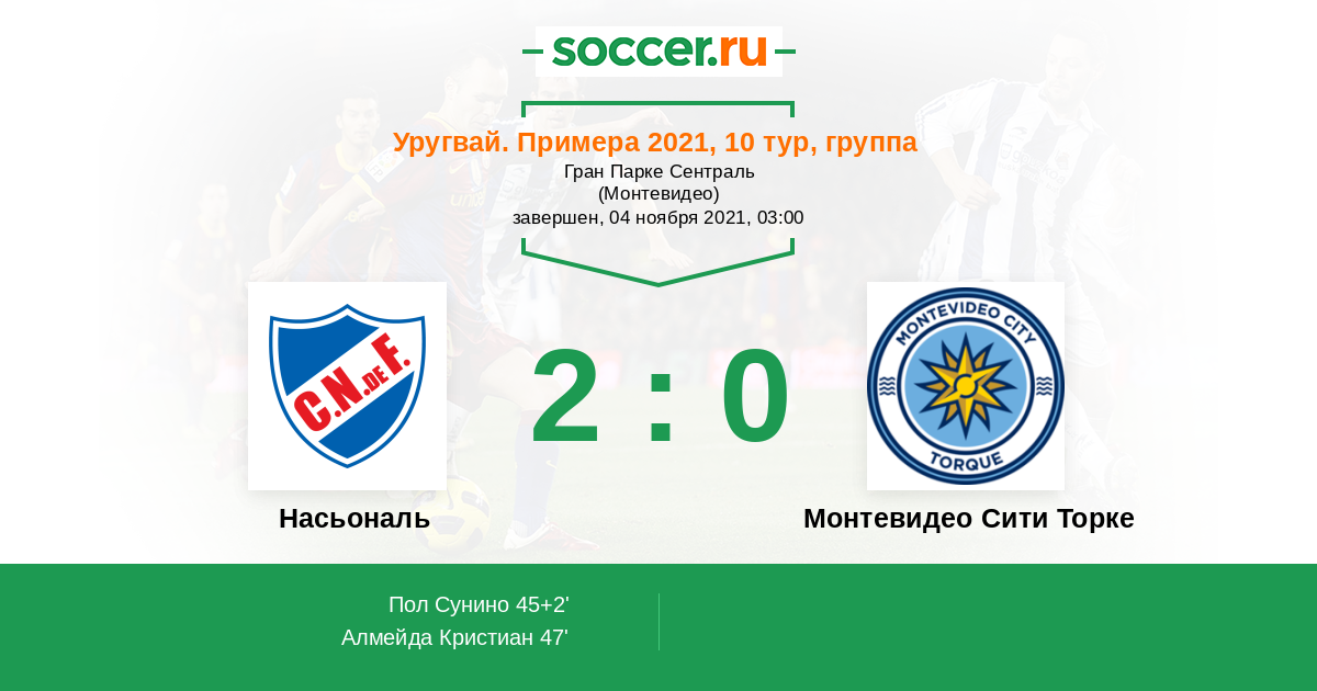 Протокол матча Насьональ против Монтевидео Сити Торке