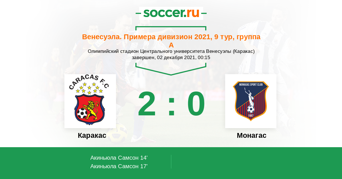Протокол матча Каракас против Монагас