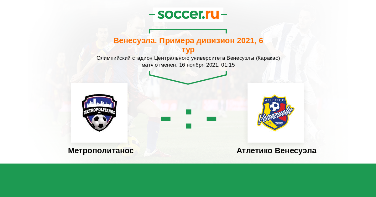 Венесуэла. Примера дивизион 13.09.2021 Метрополитанос Логотип футбольный клуб Метрополитанос (Лос-Текес) 2:1 Логотип Атлетико Венесуэла (Майкуетья) Атлетико Венесуэла