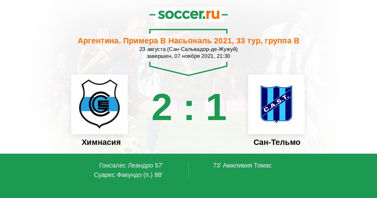 Протокол матча Химнасия против Сан-Тельмо
