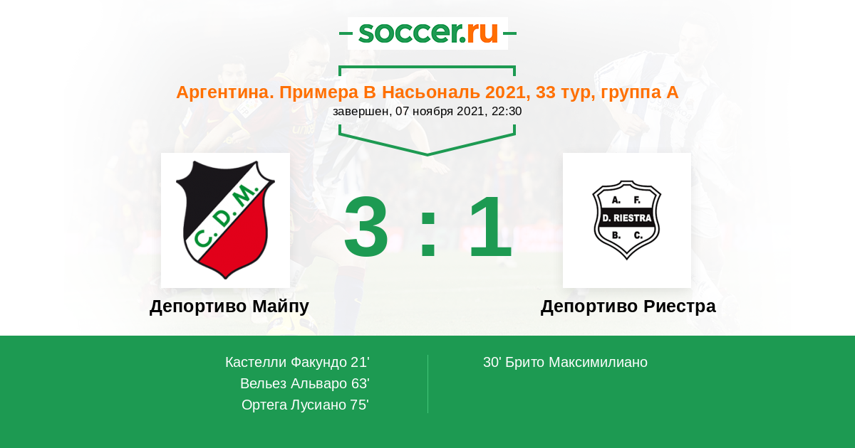 Протокол матча Депортиво Майпу против Депортиво Риестра