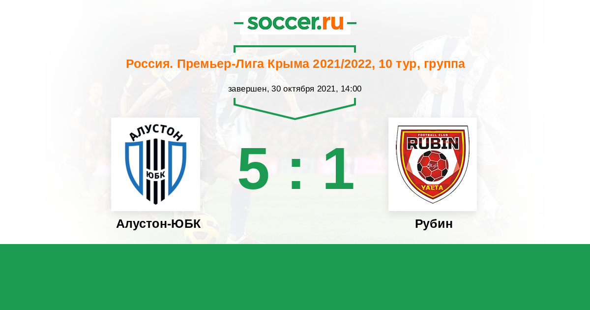 Россия. Премьер-Лига Крыма 09.04.2022 Алустон-ЮБК Логотип футбольный клуб Алустон-ЮБК (Алушта) 0:1 Логотип футбольный клуб Рубин (Ялта) Рубин