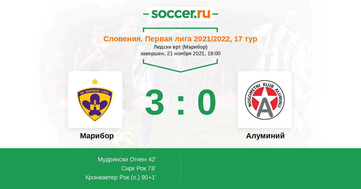 Протокол матча Марибор против Алуминий