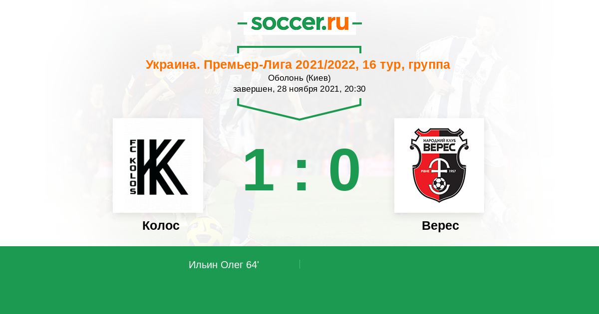 Протокол матча Колос против Верес