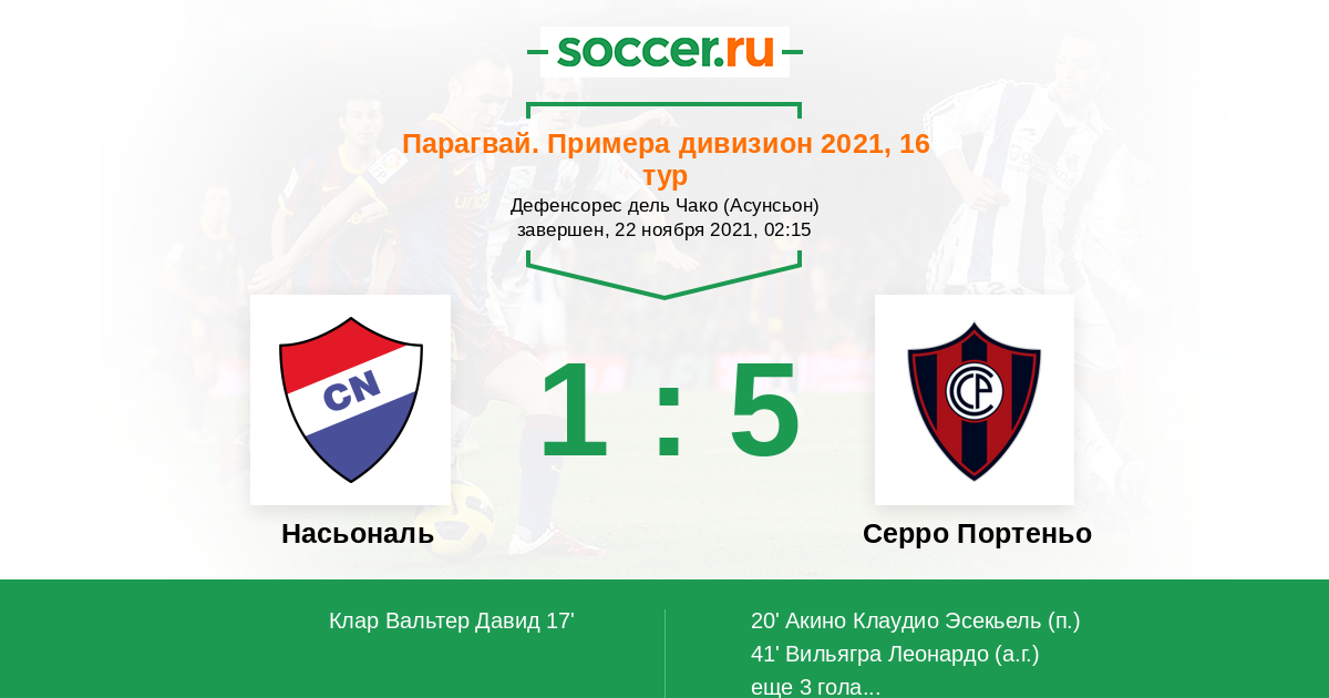 20' (1:1) Акино Клаудио Эсекьель (22)