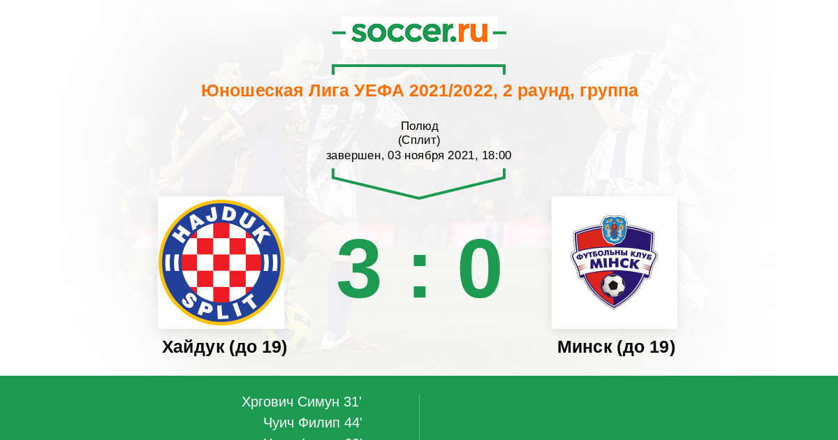 Протокол матча Хайдук (до 19) против Минск (до 19)