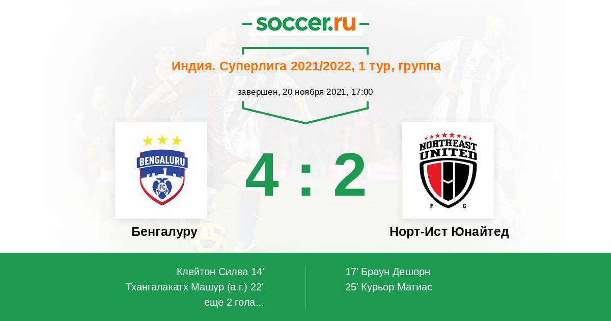 Протокол матча Бенгалуру против Норт-Ист Юнайтед