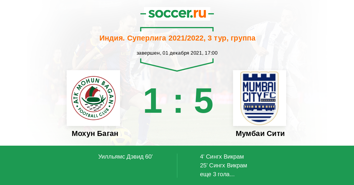 Протокол матча Мохун Баган против Мумбаи Сити