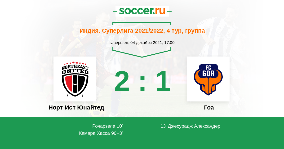 Протокол матча Норт-Ист Юнайтед против Гоа