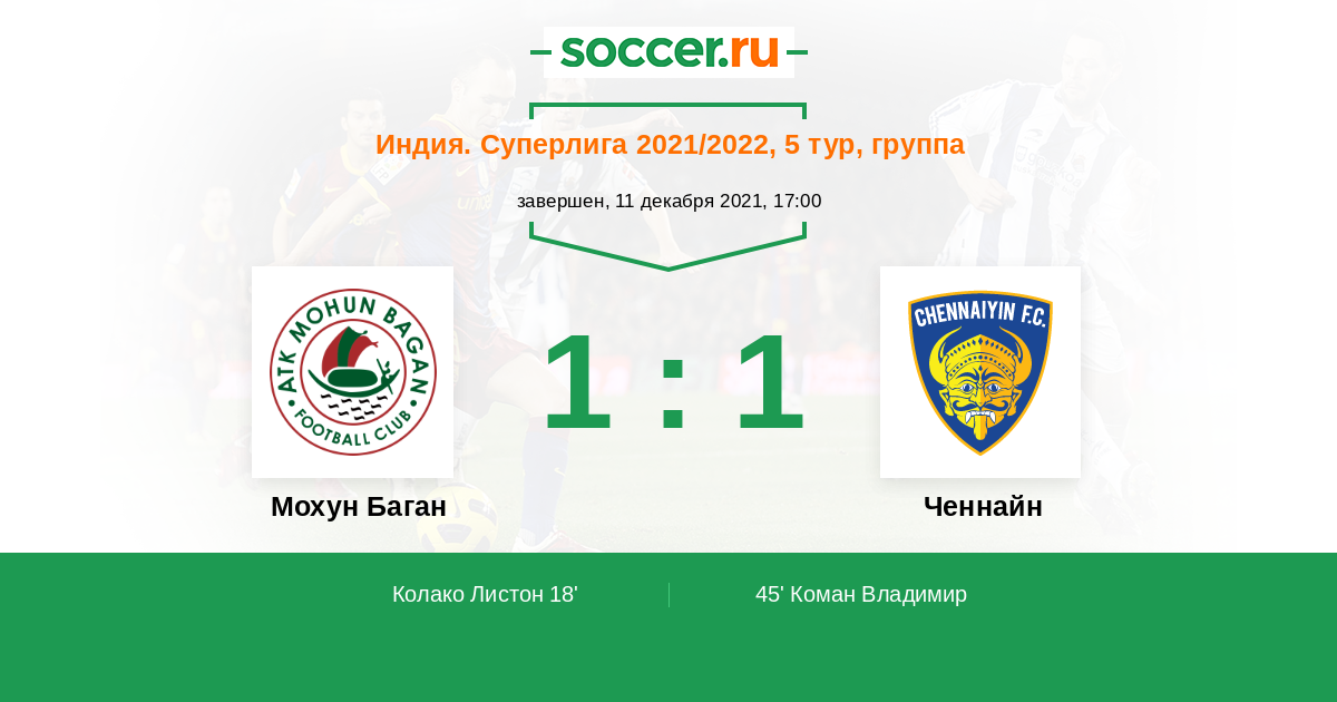 18' (1:0) Колако Листон (17) (Кришна Рой (21))