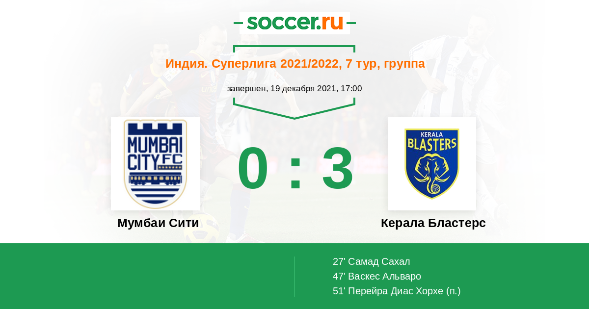 Протокол матча Мумбаи Сити против Керала Бластерс