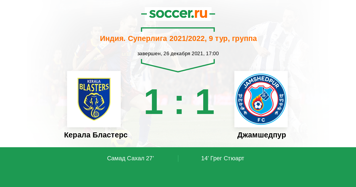 Протокол матча Керала Бластерс против Джамшедпур