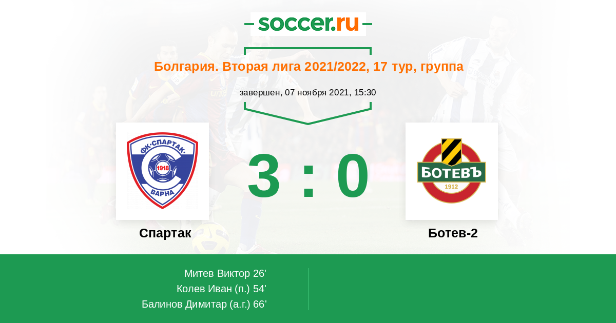 Протокол матча Спартак против Ботев-2