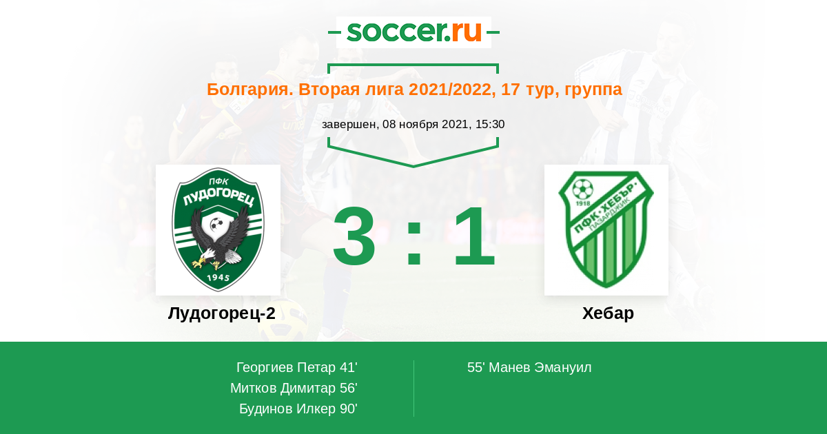 Протокол матча Лудогорец-2 против Хебар