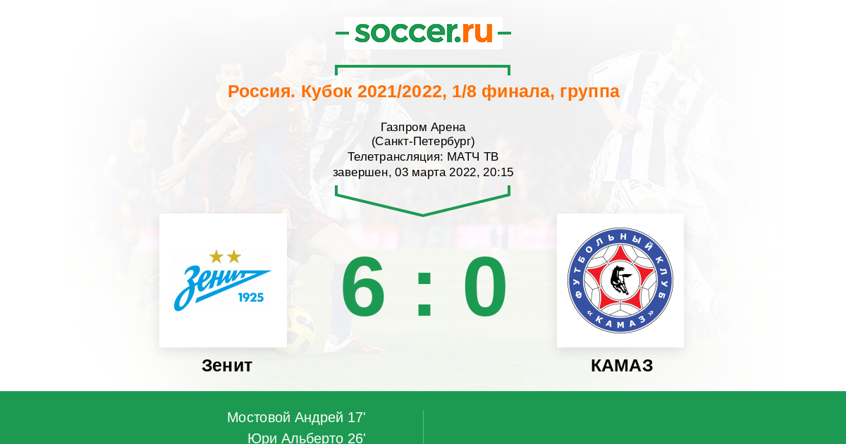 «Зенит», как оказалось, не сильно обеспокоен потерей Сердара Азмуна. Новички проявили себя просто отлично. Порадовали забитыми голами и активностью на поле. «КАМАЗ» может похвастаться только неплохой обороной, но не более. Впрочем, под натиском петербуржцев она наверняка не устоит.