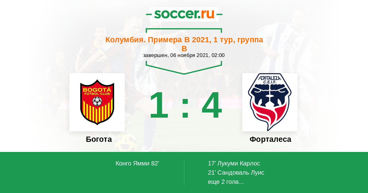 Протокол матча Богота против Форталеса