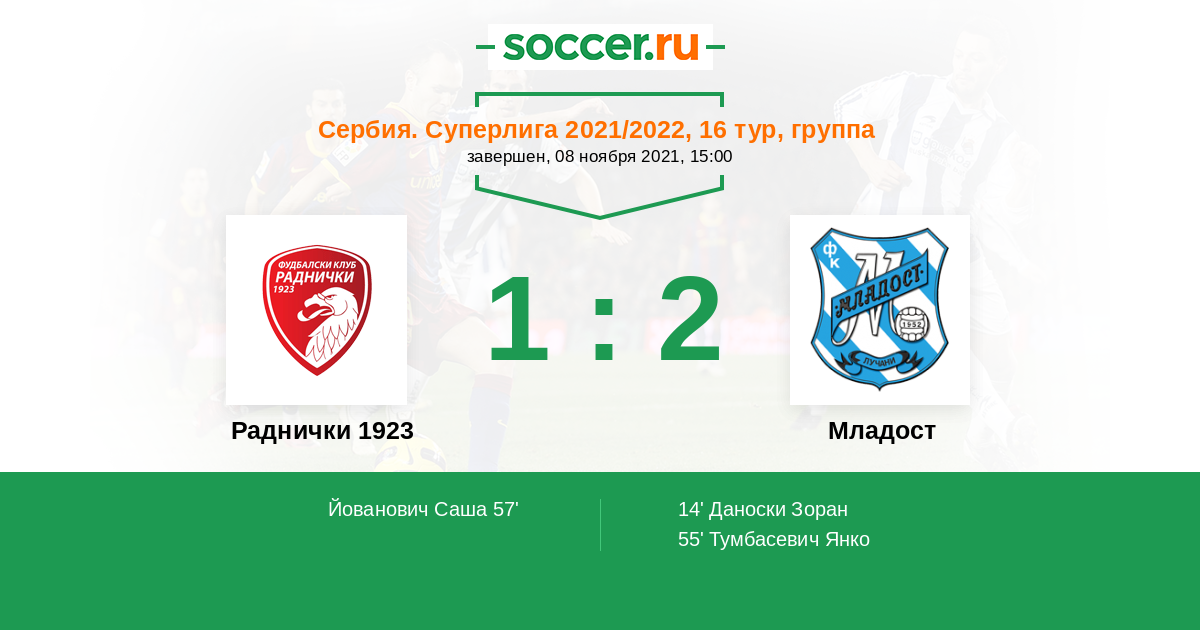 Протокол матча Раднички 1923 против Младост