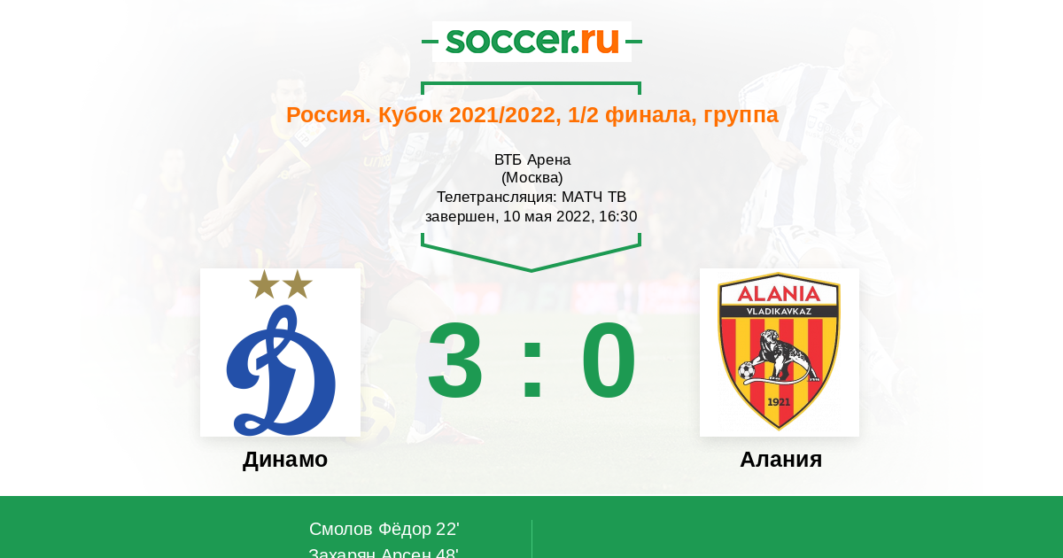 Протокол матча Динамо против Алания