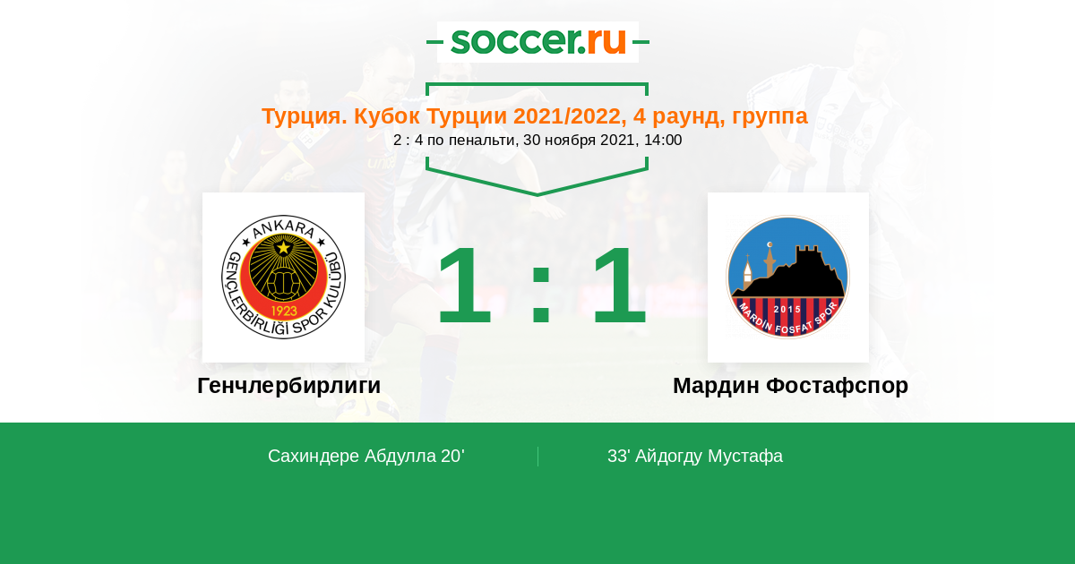 Протокол матча Генчлербирлиги против Мардин Фостафспор