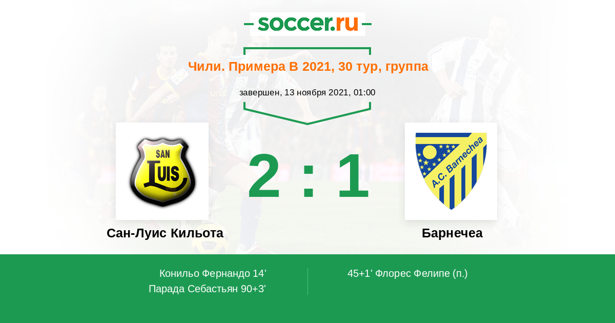 Протокол матча Сан-Луис Кильота против Барнечеа