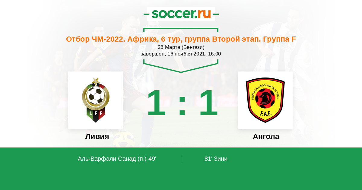 Протокол матча Ливия против Ангола